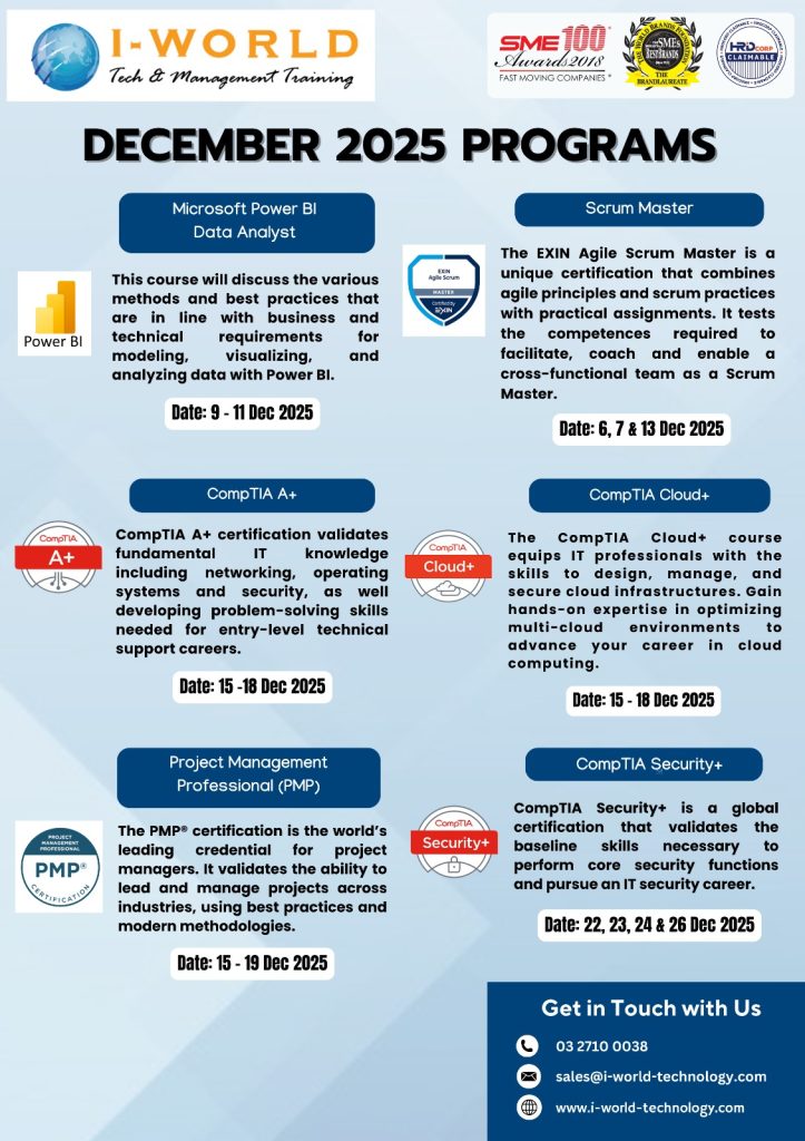 I World Technology Sdn Bhd signed up a partnership with Peoplecert as their accreditation centre in June 2020 to deliver Prince 2 Agile program and ITIL foundation Certification